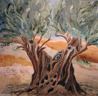 Oerboom vol energie, 115 x 120 incl. lijst Gemengde techniek op paneel olijfboom anno 909, staat bij de Pont du Gard, een Romeins viaduct, vlakbij Nimes. Dit schilderij is in privébezit, maar kan in de maat die u wenst, in opdracht voor u gemaakt worden. lees verder