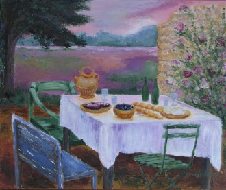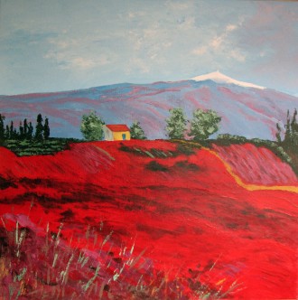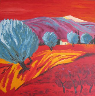 40 x 50 olie op linnen. Van de Mt Ventoux onderweg naar Sault, Zuid Frankrijk. Dit schilderij is verkocht. lees verder