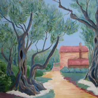 100 x 100, olie/gemengde techniek op linnen. Het laatste atelier van de schilder Renoir in Cagnes sur Mer. Dit schilderij is verkocht. lees verder