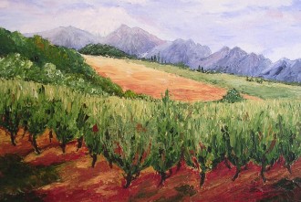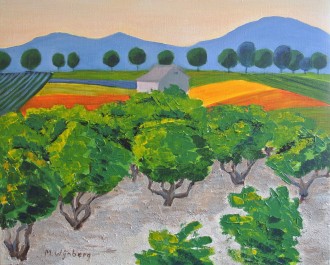 Contact50 x 60, acryl op linnen, wijnranken in Zuid Frankrijk. Dit schilderij is verkocht. lees verder
