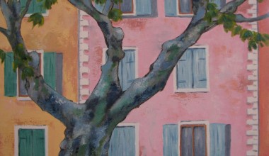 Plataan en pastel plataan en pastel 50 x 60 olie op linnen, moment in Buis les Baronnies, omgeving Mont Ventoux